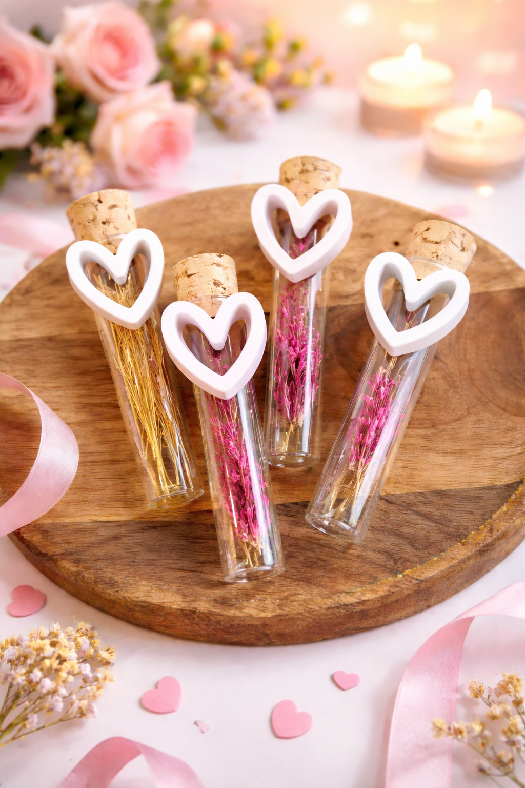 Diese liebevoll gestalteten Herz-Wunscherfüller sind eine besondere Art, Gefühle, Wünsche und kleine Botschaften zu verschenken. Die zarten Glasröhrchen mit Herzclip eignen sich perfekt, um einen Wunsch, einen lieben Gruß oder eine persönliche Nachricht stilvoll zu überreichen.