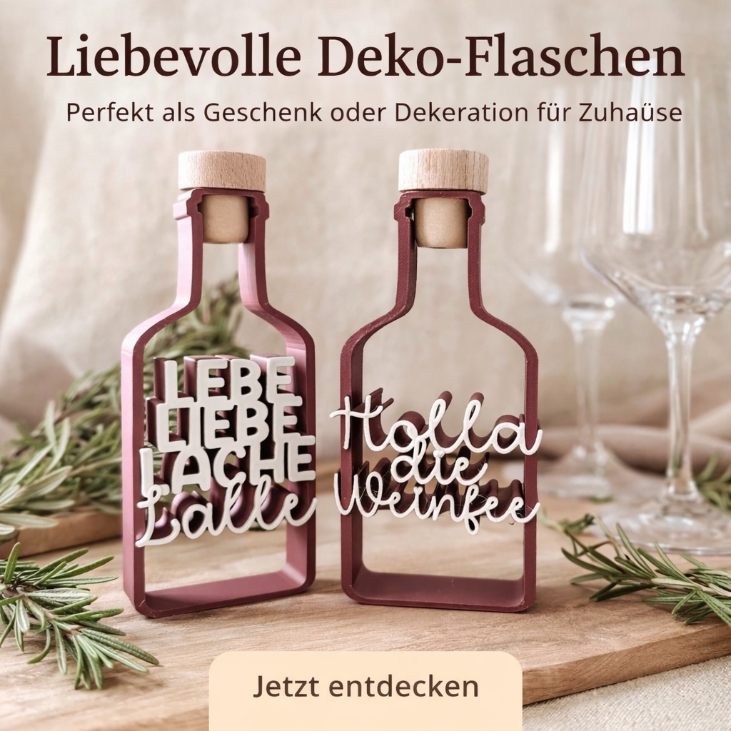 Ob einzeln dekoriert oder als Set kombiniert – diese Weinflasche sagt mehr als tausend Worte und passt perfekt zu genussvollen Momenten.